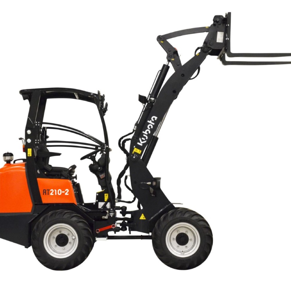 With a maximum lifting capacity of 1,200 kg (straight position) and a pin height of 2,070 mm, the RT210-2A delivers impressive lifting power for its size. The high-performance hydraulic system ensures fast, smooth operation, while the optional hydraulic quick-hitch system allows for rapid attachment changes, increasing efficiency and versatility.