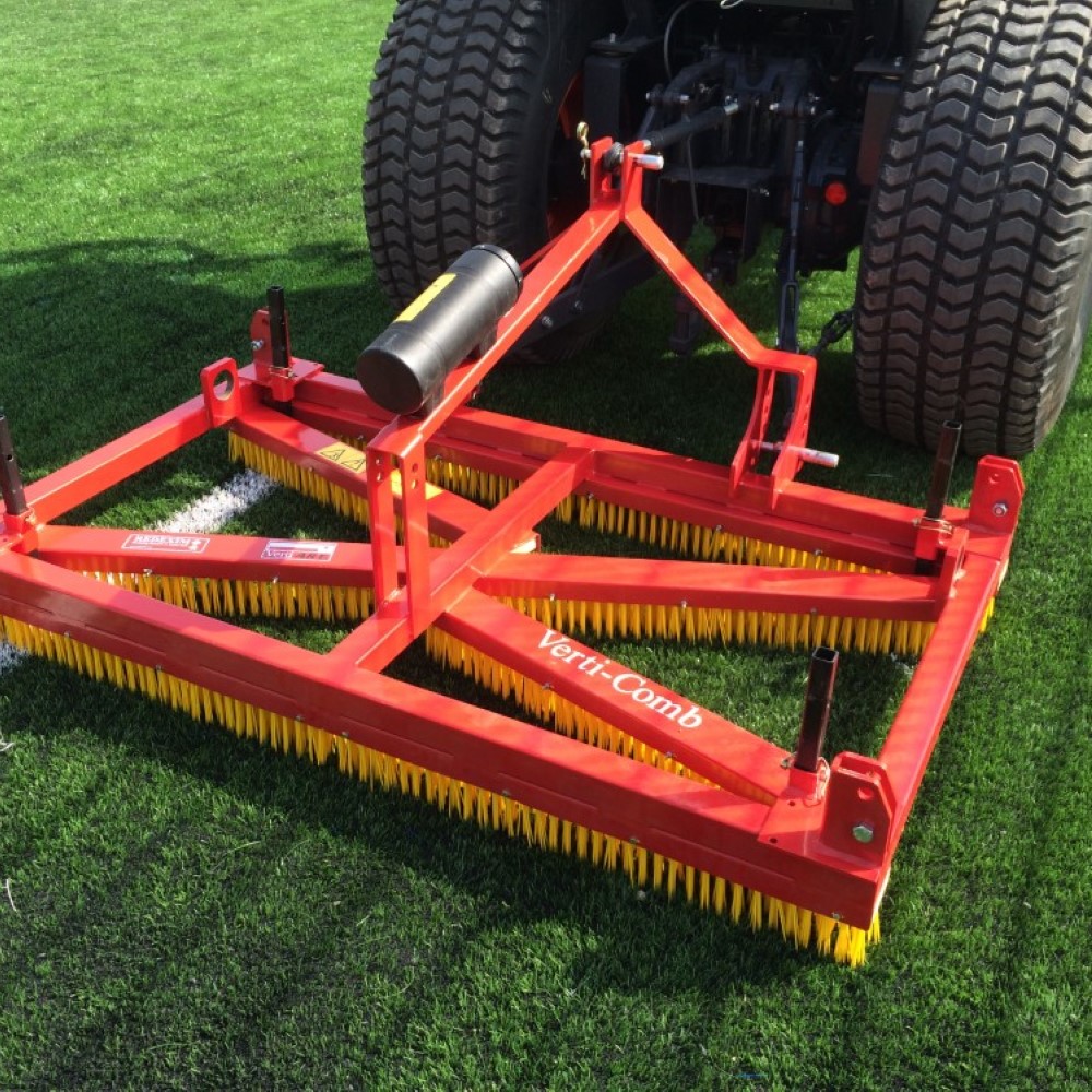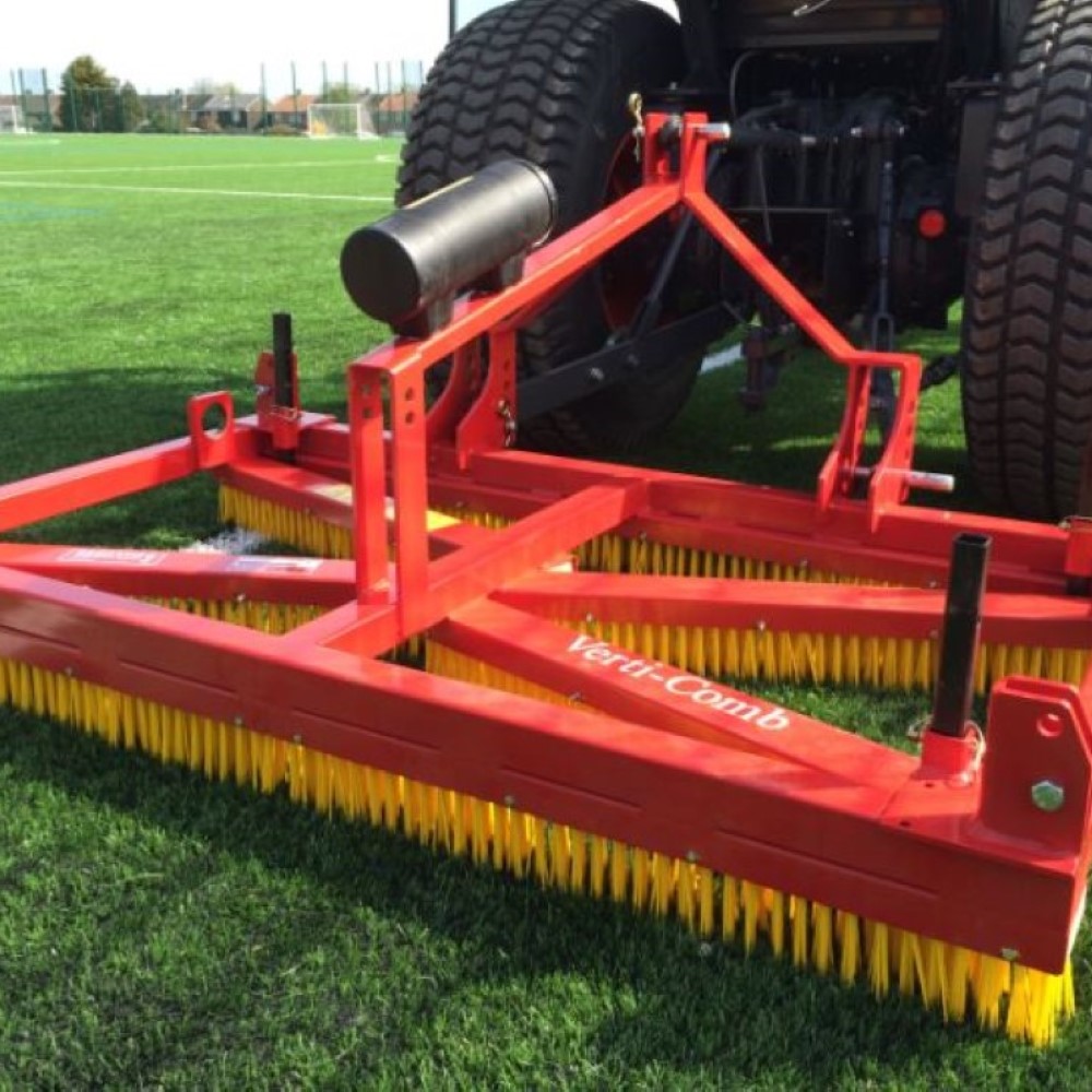 Its 1.8-metre working width ensures excellent productivity, allowing operators to maintain large areas efficiently. The Verti-Comb uses a combination of spring tines and brushes to loosen compacted infill and lift flattened turf fibres. This process restores the resilience and play quality of synthetic surfaces while helping to improve drainage and extend surface lifespan.